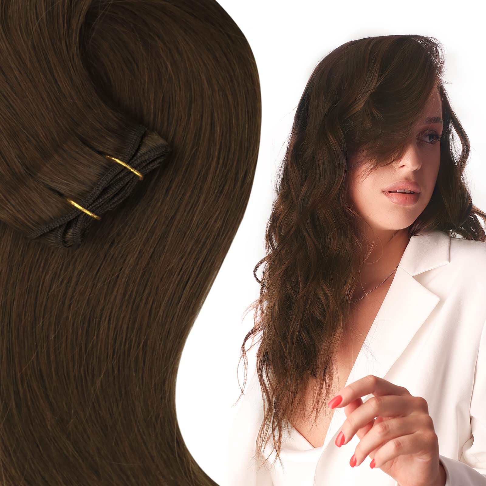 Amazon Com Full Shine Sew In Weft Hair Extensions Human Hair Brown 105 Grams Hand Tied Weft Hair Extensions Human Hair Medium Brown Sew In Extensions Real Hair 20 Inch Beauty